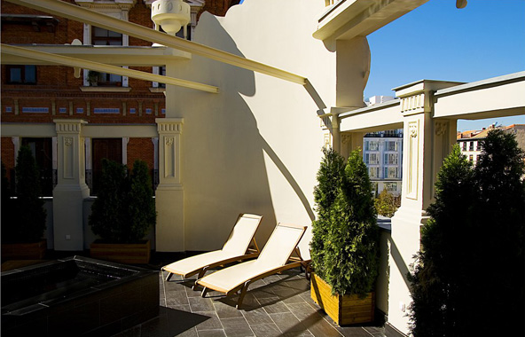 Hotel Orfila מלון יוקרתי מבית Relais& Chateaux אשר שוכן בבית אחוזה עתיק בשכונת מגורים שקטה, הרחק מהמולת העיר. במלון 32 חדרים וסוויטות, כולם שונים זה מזה, אך כולם מרווחים מאוד, מרוהטים בריהוט מהמאה ה-19, מעוטרים ביצירות אמנות ומאובזרים בג'קוזי. להשלמת החוויה, יש במלון גן שליו ופטיו ומסעדת גן עטורת שבחים. כתובת: Calle de Orfila 6  הלובי במלון Orfila. בית אחוזה עתיק ומהודר בתמונה הפותחת: נוף עירוני הנשקף ממלון פלאסיו רטירו |