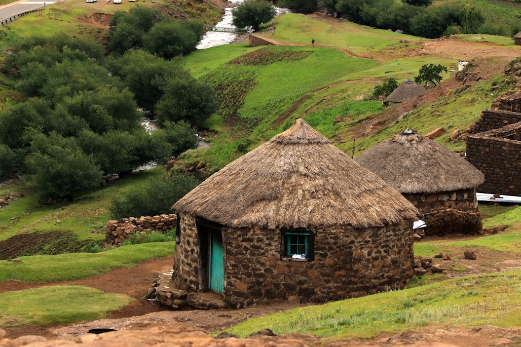 לא ראיתי פרצופים עלובים, אבל הדלות שררה בכול עבר. הוזמנו להיכנס לאחת הבקתות. בירכנו את האשה הצעירה שישבה שם, בברכת '’Lumela" (שלום). בבקתה יכולים לחיות עד עשרה אנשים. בדרך כלל ילדים ונערים. בבקתה אחרת גרים ההורים ובבקתה שלישית נמצא המטבח. בהיעדר עצי הסקה, מבעירים אש מגללי פרה. העשן משחיר את תקרת הבקתה. על הקיר כתוב משפט בו מברכים התושבים איש את רעהו: "”Khorso, Pula, Nala, שמשמעו "אנשים, גשם, שגשוג". ישבנו על ספסל, בצד המוגן מעשן, התבוננו בסקרנות בבקתה ובפער העצום בין מה שיש בה לבין מה שיש לנו בעולם המודרני. יחסית למרבית תושבי העולם אנחנו עשירים מאד. האשה הצעירה הדגימה בפנינו כיצד היא טוחנת גרגירי חיטה באבני ריחיים וכיצד היא מכינה את הלחם המקומי. היא הדגימה לנו את עטיית השמיכה האופיינית שלהם, המשמשת אותם גם כשכמיה ונקראת Bohobe.