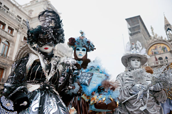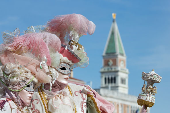 קרנבל המסכות של ונציה כולם אוהבים להתחפש מפעם לפעם ולהתחבא מאחורי זהות חדשה. לנו יש את פורים, לאמריקאים יש את הלואין ולאיטלקים יש את קרנבל המסכות של ונציה. בכל חורף, למשך עשרה ימים בחודש פברואר (עשרת הימים שלפני הלנט), עוטה על עצמה ונציה תחפושות ומסכות בשלל צבעים וחוגגת את אחד הקרנבלים הגדולים בעולם. קרנבל המסכות התיאטרלי הוא סיבה טובה להגיע לאיטליה והמוני חוגגים מכל העולם מגיעים כדי לחוות את האווירה המשכרת של קרנבל אמיתי, המחייה את מסורת נשפי המסכות מהמאה ה-18. החגיגות הצבעוניות כוללות מצעדים ותהלוכות עם שלל תלבושות ססגוניות, נשפי תחפושות מפוארים, מופעים, מוזיקה, חגיגות לאורך התעלות ובכיכרות העיר וכמובן – המון מסכות. .jpg) זוג מחופש בקרנבל המסכות בוונציה. מטיילים מכל העולם מגיעים כדי להשתתף בקרנבל הייחודי הזה
