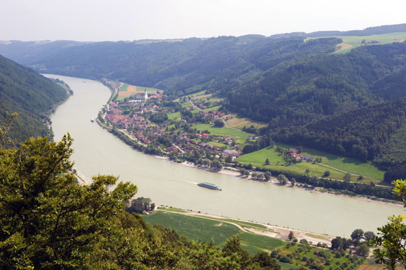 הרכיבה מתחילה עם כיוון זרימת הדנובה, אל העיירה אנגלהרצטל (Engelhartszell), שבה מנזר שתקנים מיוחד. משם ממשיך המסלול אל "עיקול הדנובה" באזור שלוגן. במקום זה, נהר הדנובה העצום מתעקל בזווית של 180 מעלות ויוצר מעין לולאה מושלמת. משם עולים על מעבורת לצדו השני של הנהר, לבית המלון בו לנים. המסלול ממשיך דרך עיירות על גדות הנהר, לכיוון העיירה הוותיקה לינץ (Linz), בירת אוסטריה העלית, השופעת במסעדות מגוונות עם מאכלים מקומיים, ותצפית פנורמית מדהימה על האזור. כדאי גם לטייל בפארק המקומי השמור והמטופח. התחנה הבאה בטיול מתחילה בהתרחקות קלה מהנהר, אל עבר מנזר סנט פלוריאן והעיר אנס, אשר לפני כאלף שנים היתה הראשונה לקבל מעמד של עיר, ולכבוד מאורע זה נבנה מגדל מרשים במרכז כיכר השוק. מומלץ לעצור לסיור במוזיאון לאוריאקום הסמוך לכיכר, האוצר בתוכו אוסף ארכיאולוגי מרשים מתקופות שונות.