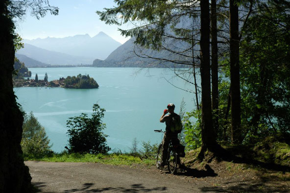 הרכיבה ממשיכה לאורך אגם בריינץ (Brienz). בחודשי הקיץ מימי האגם נעימים ומומלץ לעצור לטבילה במים התכולים והצלולים. יום הרכיבה הבא מסתיים בעיירה אינטרלקן (Interlaken). לאורך הדרך נגלים אזורים כפריים ששמרו על קסמם הפרובינציאלי, עם אורח חיים כפרי ישן ואזורים מבודדים נטולי מגע אדם. בדרך חוצים את אזור שלושת האגמים ורוכבים לאורך מרגלותיהם הדרומיים של הרי היורה. הרכיבה ממשיכה אל עבר העיירה טון (Thun). מאחר שזהו חצי יום רכיבה בלבד, מומלץ לדחות את טיול הרכיבה לאורך האגם לשעות הצהריים ולשמור את הבוקר לטיול בסמטאות אינטרלקן. המסלול לטון רצוף בנוף פנורמי מרהיב של פסגות מושלגות, כרמים, בקתות שוויצריות טיפוסיות ומים כחולים מהפנטים. הרכיבה ממשיכה דרך בירתה של שווייץ, ברן, עם נוף פתוח של מישוריו הרחבים של עמק הארה, באזור משולט היטב עם תנועת רכבים מעטה ביותר. מברן ממשיכים לאזור אגם ביל, כשבדרך פוגשים מתקנים של ייצור אנרגיה ואזורים חקלאיים נרחבים של גידול ירקות. לאחר קטע זה ברכיבה, חוזר נהר הארה ללוות את הטיול.