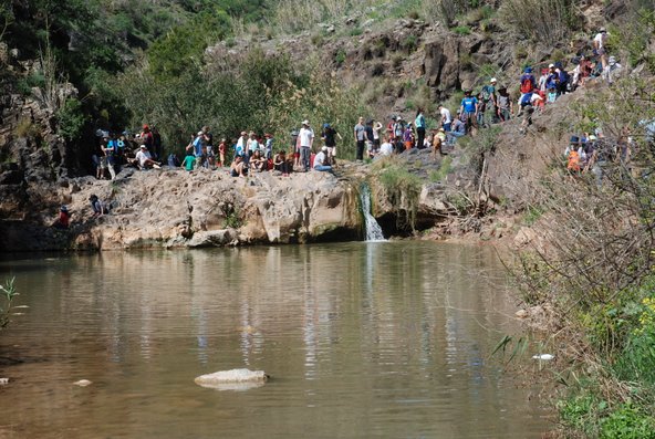 מטיילים בבריכת נחל תבור | צילום: אריה טננבאום, אתר פיקיוויקי