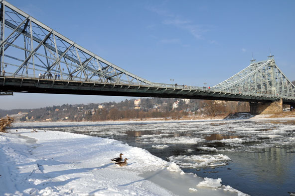 מדרזדן אפשר לחזור לברלין בכביש המהיר 13, כשעתיים נסיעה צפונה. אבל אם תרצו להאריך את הטיול עוד קצת מומלץ לנסוע כ-50 ק"מ מזרחה בכביש E40 אל העיר ההיסטורית היפהפייה באוצן (Bautzen) הממוקמת על גבעה מעל נהר השפרה. קו הרקיע של באוצן נשלט על ידי מגדלים עתיקים וצריחי כנסיות, כשמעל הכל מיתמרת מצודת אורטנבורג (Ortenburg). אל תחמיצו בטיול במרכז ההיסטורי את בית המכשפה (Hexenhaus), מבנה המגורים העתיק ביותר בעיר, שנבנה ב-1604. הדרך המהירה לחזור מכאן לברלין היא לשוב לדרזדן ומשם בכביש המהיר לברלין. בתמונה הראשית: גשר הפלא הכחול (Blaues Wunder) הנמתח מעל נהר האלבה בדרזדן בחורף מפת המסלול: לחצו להגדלה