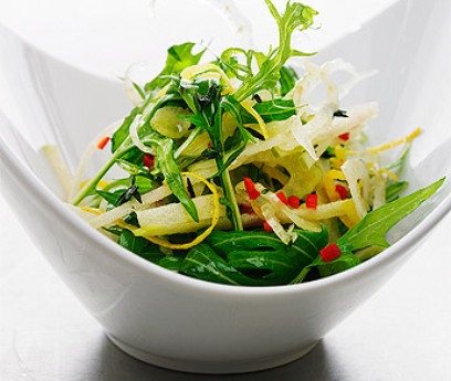 סלט אלגנטי בסאף. אוכל שלא עבר בישול או חימום מעל 48 מעלות
