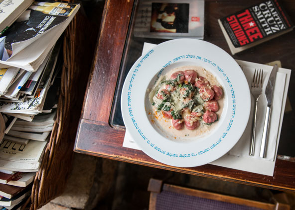 מעבר לסלטים, כריריכם ופסטות שאפשר למצוא בכל בית קפה, יש פה מבחר של מרקים ותבשילים שכיף לאכול כשבחוץ קר: תבשיל עדשים וגזר על אטריות אורז וביצים או תבשיל של גרגירי חומוס, ירקות כתומים ותפוחי אדמה, שמתבשלים לאט עם חלב קוקוס, קינמון ובורגול. בין המשקאות החמים המושלמים ללילה חורפי, תמצאו סיידר אלכוהולי חם, סחלב חם עם בננות וריבת חלב, קפה אירי ולפינוק מושלם – צוללת, שוקו חם עם מרשמלו ואמרטו. כתובת: יואל משה סלומון 5, ירושלים, טלפון: 02-6232758 ניוקי סלק בתמול שלשום. כשהאוכל והספרים נפגשים