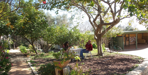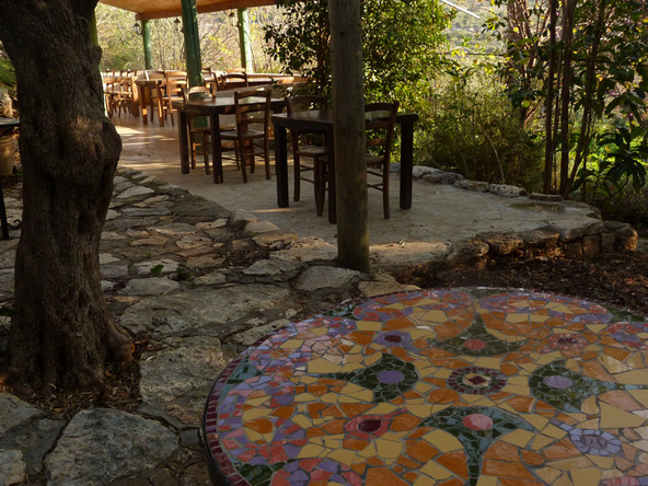 התפריט ברובו אורגני ויש בו מנות רבות ללא גלוטן. על המטבח מנצחת יוטקה הרשטיין, שאחראית למנות נפלאות כמו לביבות שקדים וירקות ברוטב חמוץ מתוק, ירקות העונה ממולאים באורז, ירקות, צנוברים ואגוזים; פשטידות כמו פשטידת סרפד, חוביזה ותרד בר; מוסקה צמחונית על בסיס תפוחי אדמה, חצילים וקינואה; רביולי תוצרת בית; מנה הודית של דאל עדשים עם תערובת דגנים, קארי ירוק, קארי חומוס וצ'טני ועוד מנות צמחוניות מיוחדות וטעימות מאוד. יש גם ארוחות בוקר וקינוחים מפנקים כמו עוגת תפוזים ושקדים, עוגת שוקולד נטולת גלוטן, פרפה תמרים וגלידות תוצרת בית. במקום פועלת גם חנות אומנים ויש הרצאות, ערבי תרבות וסדנאות בישול. איפה? קיבוץ הרדוף, טלפון: 04-9059229 .jpg) הגינה של מסעדת הרדוף. אוכל טוב ואווירה מיוחדת