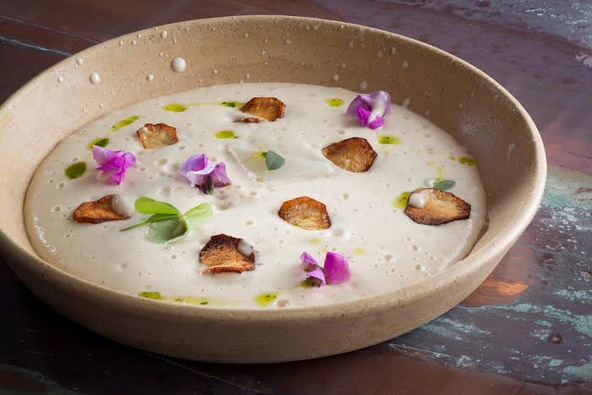 המטבח של רמה המסעדה הוותיקה בנטף מציעה אוכל משובח עם בונוס מיוחד בדמות הנופים הירוקים של הרי ירושלים שנשקפים מהמרפסת. אמנם הרבה מהמנות פה בשריות, אבל טאבון האבן הגדול שבליבה של המסעדה מספק מאפים נהדרים שיגרמו אושר לכל צמחוני, כמו מאפה גבינת ג'יבנה על פסטו כוסברה עשבי הר, עגבניות לחות, זרעי רימונים וקונפי שום, מאפה גבינת עיזים מעושנת בעלי מרווה, אגסים ביין, פסטו כוסברה ועשבי הר ופרוסות שקדים וגם מנה לטבעונים – סמבוסק עם רטטוי של ירקות שורש, קונפי שום ועלי מרווה מטוגנים.  מרק ארטישוק ירושלמי מוקרם עם שמן עירית, עלי גפן קריספיים ויוגורט במטבח של רמה | צילום: אנתולי מיכאלו