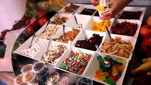 ואם כבר עצרתם בעין יהב, הנה שני מקומות שישמחו את חובבי המתוקים: שוקוליטלי בוטיק שוקולד איכותי שמציע בנוסף לתוצרת מתוקה גם סדנאות משפחתיות ליצירת שוקולד. בתיאום מראש. טלפון: 052-866-6273 גרטרוד יוגורטריה משפחתית המגישה תפריט עשיר של קינוחים ומתוקים, כשגולת הכותרת היא גלידת יוגורט ביתית עם תוספות נהדרות כמו פירות העונה, ריבות ורטבים ביתיים, פיצוחים, פרלינים וגרנולה ביתית. בחורף מתווספים לתפריט מרקים, סחלב, שוקו חם ומשקאות קפה. טלפון: 052-881-4466 מה תרצו על גלידת היוגורט שלכם? מבחר תוספות בגרטרוד