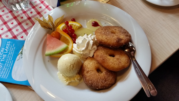 טבעות תפוחים אפויים (Gebackene Apfelringe). המטבח הגרמני המסורתי הוא חלק בלתי נפרד מחווית הטיול