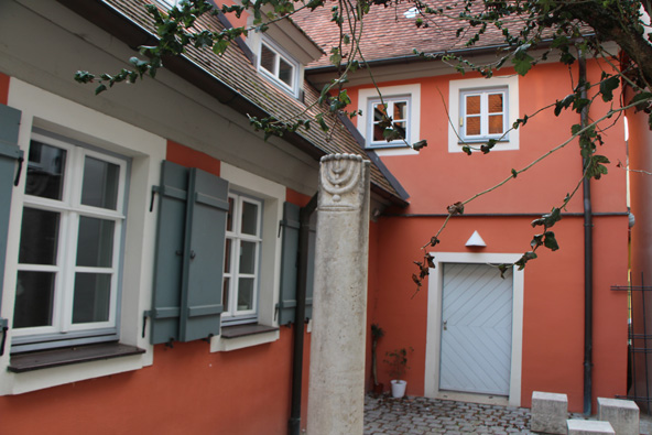 סמל המנורה בכניסה למקווה בעיר גונצנהאוזן