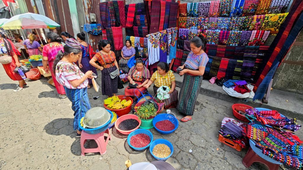 שיא הביקור בסנטיאגו היה השוק התוסס, אליו מגיעים תושבים מכל רחבי אגם אטיטלן כדי למכור את מרכולתם. השוק הוא חגיגה תרבותית של צבעים, קולות וריחות מחיי היומיום הילידיים. נשים בלבוש מסורתי התמקחו ושוחחו, כשההוויפילים (חולצות) והקורטס (חצאיות) הססגוניות שלהן יוצרות קליידוסקופ של צבעים. רוזה הצביעה על מטבע קצאל בן 25 הסנט, שעליו מתנוססת דמותה של אישה מסנטיאגו – סמל לרוח העקשנית של הכפר.