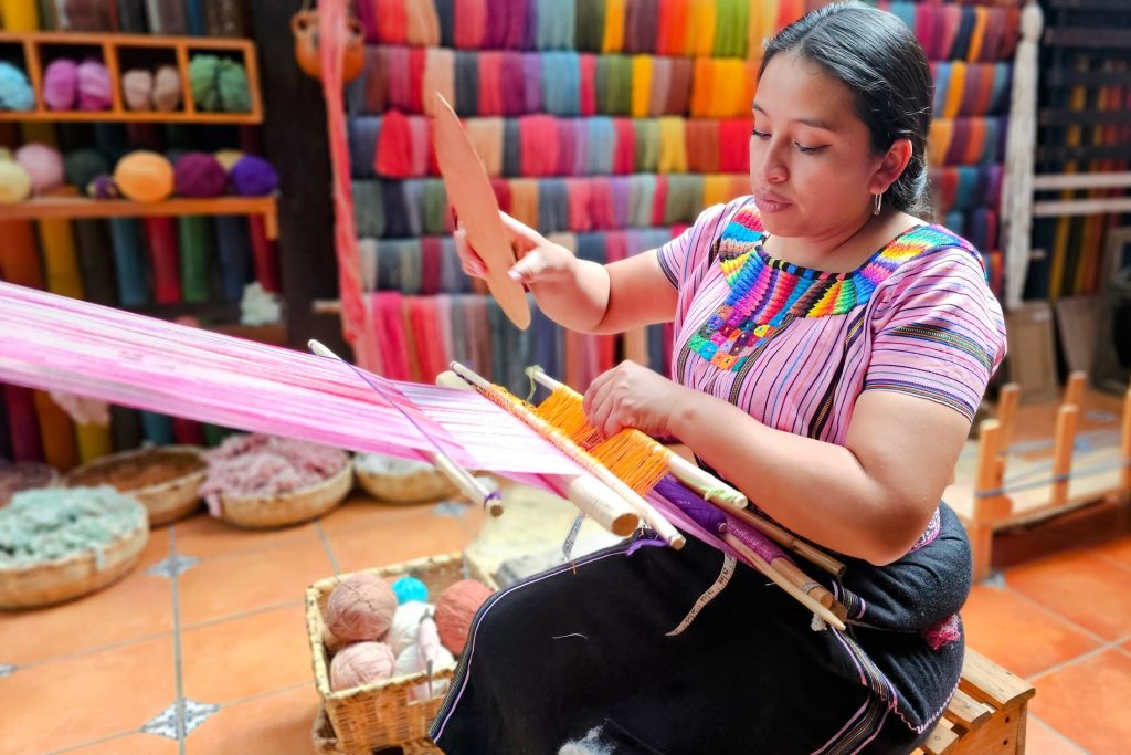 ההרפתקה שלנו החלה בסן חואן, כפר הידוע בטקסטיל הססגוני שלו ובעושר התרבותי. כשצעדנו מהסירה אל המעגן הצבעוני, קיבלו את פנינו ציורי קיר ואמנות רחוב המספרים את סיפורי ההיסטוריה והמסורת של הכפר. רוזה הובילה אותנו אל אורגת מקומית, שסיפרה על המשמעות העמוקה של הבגדים המסורתיים שלבשו נשות סן חואן. לכל כפר סביב אגם אטיטלן יש דוגמאות וצבעים ייחודיים – מסורת שהחלה בתקופת הכיבוש הספרדי. הספרדים הקצו צבעים ספציפיים לכל כפר כדי לשלוט ולזהות את האוכלוסייה הילידית, אך אנשי המאיה הפכו מעשה דיכוי זה לסמל גאווה, על ידי טווית עיצובים מורכבים המספרים את סיפוריהם ושומרים על זהותם. האורגת הסבירה שבסן חואן משולבים בבגדים סמלי לוח השנה של המאיה, עם כשהצבע הדומיננטי הוא הצבע האדום, המסמל עוצמה וחוסן. האיכות יוצאת הדופן של הבגדים מאפשרת להם להחזיק מעל 20 שנה, מה שהופך אותם גם לפרקטיים וגם לסמל תרבותי עמוק.