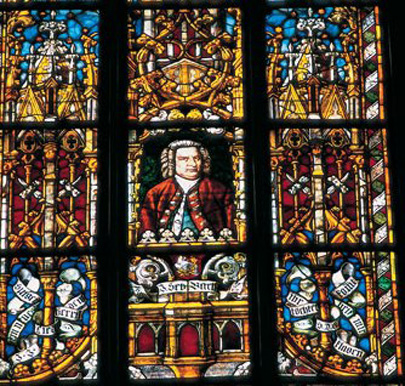 ויטראז' עם דמותו של באך בכנסיית סנט תומס בלייפציג. מדי שנתיים נערכת כאן תחרות בינלאומית לנגינת באך, ובכל סוף שבוע אפשר לשמוע מיצירותיו
