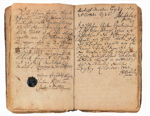 מסמך מארכיון באך בלייפציג, הכולל מעל 100 אלף ספרים, מחברות תווים