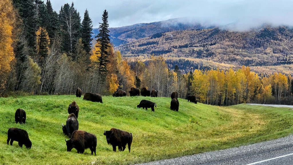 בדרך לפרינס ג'ורג' נסענו בכביש אלסקה (Alaska Highway), אחד מנתיבי התחבורה המפורסמים ביותר בעולם, המוקף בנופי טבע פראי אינסופיים. במהלך הנסיעה פגשנו עדר ביזונים פראיים – מחזה נדיר שהרגיש כמו סצנה מתוך מערבון. הביזונים, שהיו בעבר על סף הכחדה, שבו לטבע הודות למאמצי שימור ארוכי שנים. לראותם משוטטים חופשיים היה מעורר הן ענווה והן התרגשות.