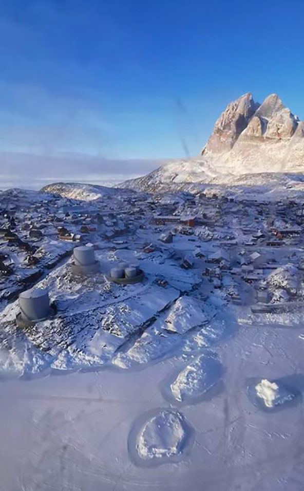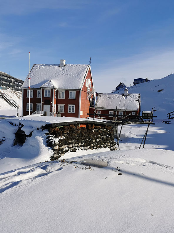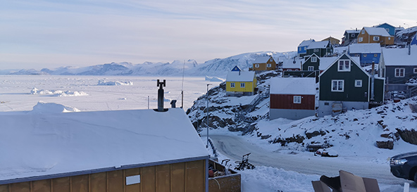 יישוב גרינלנדי – מקבץ של בתי עץ צבעוניים המשקיפים אל המפרץ הקפוא
