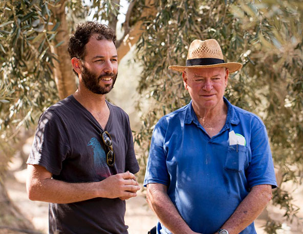 שני דורות של חקלאים: נועם ועדו תמיר בכרם הזיתים של חוות פתורה | צילום: ערן כהן