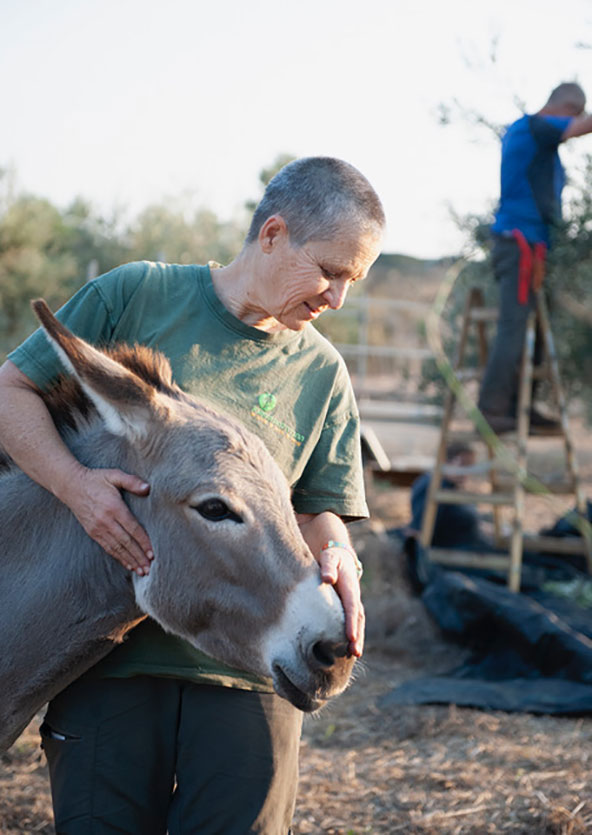 בכרמי הזיתים של משק גרתי פגשתי את ג'סיקה האתון ובתה סאפירה, חלק מעשרה חמורים ואתונות מאושרים המשוטטים להנאתם בין עצי הזית, מלחכים עשב ומבקשים ליטוף, שמפוגג מיד את כל הדעות הקדומות שהיו לי על חמורים. הסצינה הפסטורלית הזו, הסיום הטוב של הסיפור, פרי שיתוף פעולה עם עמותות המתמחות באיתור חמורים פגועים ונטושים. כשמגיעה הקריאה לאסוף אתון בהריון מתקדם, מומי שואל עגלה מהשכן ויוצא על תקן אמבולנס להוסיף חברה נוספת למשפחה.