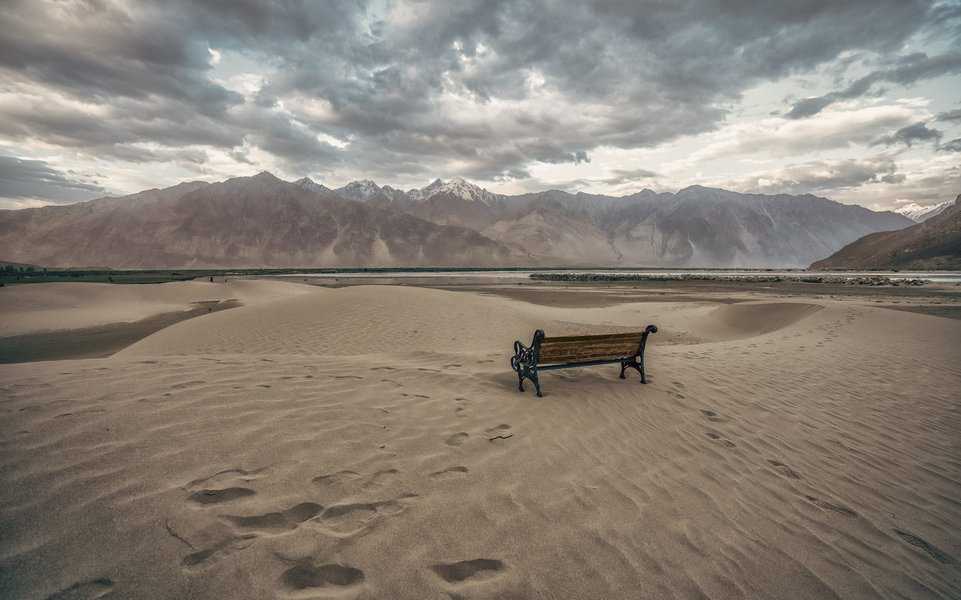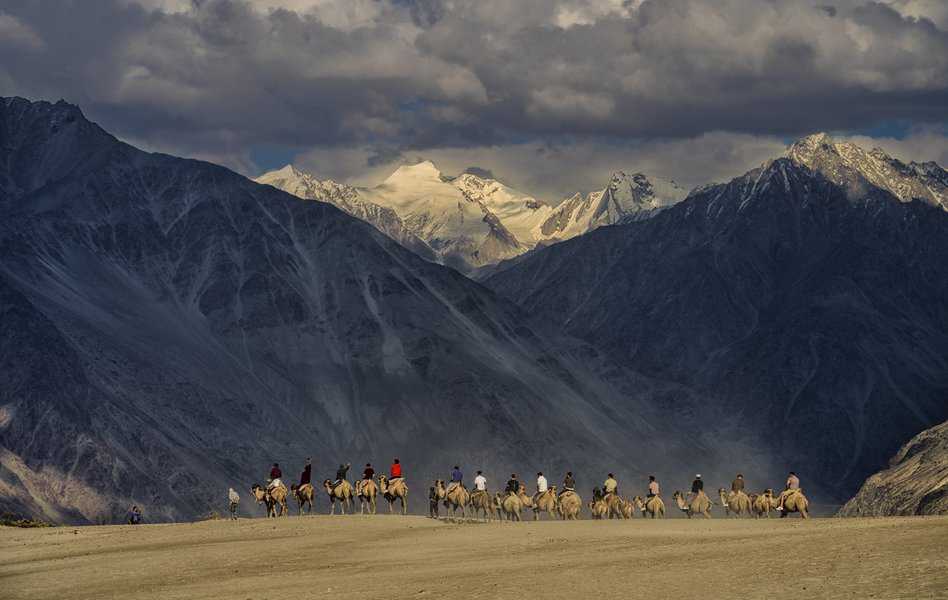 במדבר הלדאקי הזה, ניתן למצוא שילוב נדיר וסוריאליסטי של דיונות חול, גמלים דו דבשתיים, אגמים קרחוניים ופסגות מושלגות.