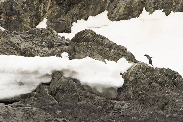 מסירת הזודיאק נראה לראשונה פינגווין אדלי, שציפיתי מאוד לראות ולצלם. הוא יצא מן הים ועשה דרך חתחתים מסוכנת, בניתורים וקפיצות במדרונות הקרח, בחזרה אל מושבת הקינון, שם בוודאי יצטרף לבן או לבת זוגו. מרחוק הוא נראה כאיש קטן הממהר לדרכו בין הרים וגבעות מושלגים… האדלים הם הפיגווינים הנפוצים לאורך רצועות החופים באנטארקטיקה. פינגווני אדלי פגיעים מאוד לתנודות האקלים, בגלל התלות שלהם למחייתם במצב הקרחונים באנטארקטיקה. קל לזהות אותם הודות לטבעת הלבנה סביב עיניהם, בנוסף ללבוש "הטוקסידו" הניגודי הבוהק המאפיין אותם ואת קרוביהם.