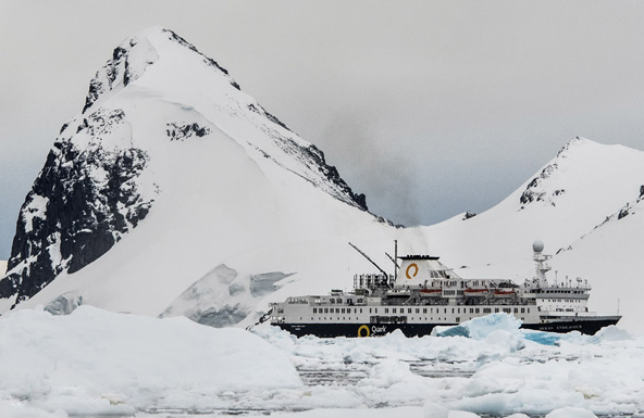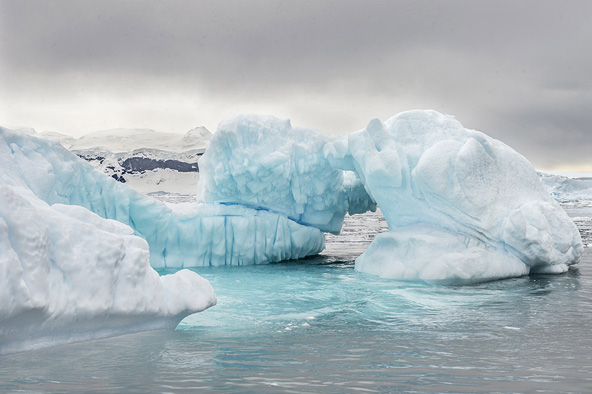 אנטארקטיקה, הספינה עוגנת מול Danco Island, הממוקם בקצה הצפוני של ערוץ Errera – אזור עצום, מרהיב במשטחי הקרח ובתצורות הנוף שנוצרו ברכסים הקפואים. מאות קרחונים צפים על פני הים. קרחונים דחוסים שאיבדו את שווי משקלם כתוצאה מהמסת חלקם החשוף, משתקפים באור בגוונים מדהימים של כחול-ירוק עמוקים, אותם ספגו בעבר ממינרלים וחומר אורגני במים העמוקים.