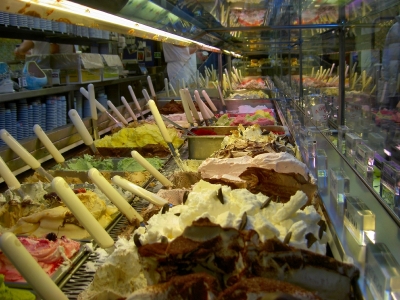 עוגת גבינה בניו יורק ניו יורק היא בירה קולינרית שאפשר למצוא בה כל דבר שבו חשקה נפשכם, אבל הקינוח שהכי מזוהה עם העיר הוא עוגת הגבינה הניו יורקית. עוגת הגבינה לא הומצאה בניו יורק ובאירופה הקדימו את ניו יורק בכמה מאות שנים בכל מה שנוגע לעוגה הלבנה הזו, אבל בניו יורק היא קיבלה את סגנונה המיוחד, שכולל גבינת שמנת, קצפת, קורטוב וניל וציפוי פירורים פריך. לא חסרים מקומות בניו יורק בהם אפשר להתענג על עוגת הגבינה המשובחת. Lindy’s restaurant היא מסעדה ומעדנייה וותיקה שכבר הפכה למוסד, ומגישה כבר עשרות שנים את העוגה, שהגרסה המקומית שלה נחשבת למפורסמת ביותר בארה"ב. מוסד מקומי נוסף שמתמחה בעוגת גבינה הוא Junior’s, ששני הסניפים שלו, שהראשון שבהם נפתח ב-1929, זוכים לעולי רגל רבים שבאים לאכול את עוגת הגבינה האלוהית. (כתובת: 1515 Broadway at 44th St).  גלידרייה בפירנצה. חוויה אסתטית, צבעונית וטעימה