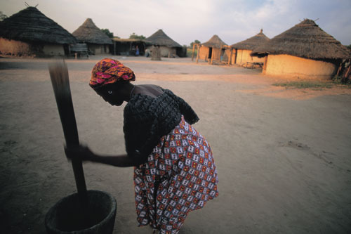 הגשם פוסק והשמש קופחת. נשות הכפר הלכו לעבוד יחד בחלקת בוטנים אחת. בתמורה ייתן בעל השדה לכולם ארוחת צהריים. הנשים והגברים חיים במידה רבה בנפרד. הנשים מבלות הרבה מזמנן יחד, כותשות את הדוחן, מבשלות, קולעות זו את שערה של זו בהמון צמות דקות, מארחות זו לזו לחברה, עובדות בשדה. הגברים מבלים בינם לבינם, משוחחים על ספורט, פוליטיקה, מתפללים, מעבדים את השדות.