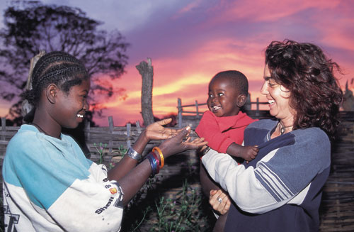 בחצר המשפחה, בינטו הקטנה מתרפקת על בתי, הולכת אחריה כצל. בתי מפנקת אותה, נותנת לה נייר וצבעים, מכבדת אותה בממתקים ששלחתי מישראל. בכל ימי שהותי כאן לא ראיתי הורים מפנקים ילדים או מתייחסים אליהם באופן שונה מיחסם למבוגרים. הצעצוע היחיד שראיתי הוא בקבוק קוקה קולה שחוברו לו ארבעה גלגלי עץ וחבל למשיכה. אבל גם לא שמעתי ילדים, או אפילו תינוקות, בוכים. הקטנים ישנים עם אמם בלילה וקשורים לגופה ביום, בזמן שהיא עובדת בשדה או מבשלת. הילדים הגדולים יותר נרתמים לעבודה.
