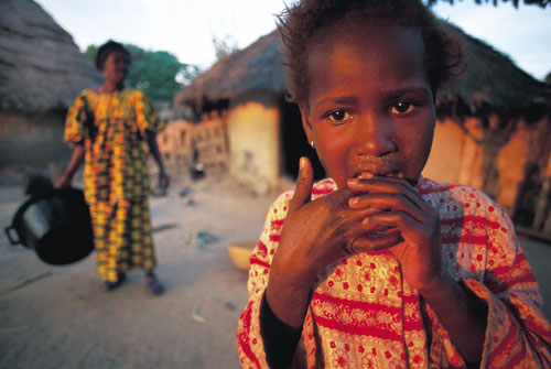 בשורה עורפית בדרך עפר לכפר השכן. אחת הילדות היא הנכדה של אמי הסנגלית, בת שלוש. הצעירה ביותר היא בת שנה וחצי.