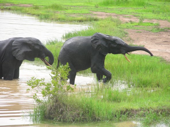 פילים רוחצים בנהר בפארק הלאומי מולה בגאנה