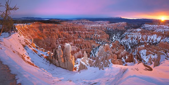 בחורף, כשעמודי הסלע של ברייס קניון מכוסים בשלג המראה מרהיב במיוחד