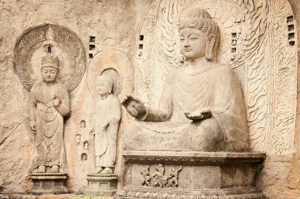 פסל של בודהה במערות לונגמן. "התגלמות יוצאת דופן של יצירתיות אמנותית אנושית"