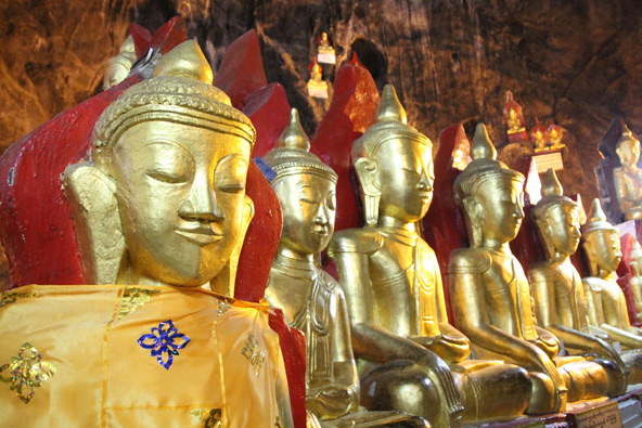 כדי להגיע למערות הסמוכות לעיר פינדייה (Pindaya) במרכז בורמה צריך להתאמץ: גרמי מדרגות תלולים מובילים אליהן. אבל המאמץ משתלם, שכן בתוכן יש אלפי פסלים מוזהבים של בודהה, רובם מהמאה ה-18. משלוש המערות החצובות באבן הגיר רק אחת, הדרומית ביותר, פתוחה למבקרים.
