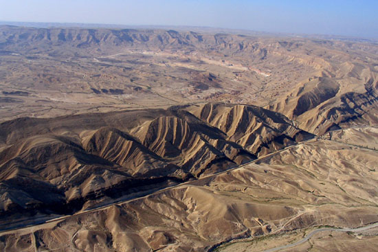 מנקודת התצפית נוכל להחליט באשר להמשך דרכנו. אפשר לרדת במסלול שסימונו ירוק בחזרה אל אתר החולות הצבעוניים ואל כלי הרכב. השביל גולש במורד ערוץ הזורם בין מצלעות המכתש אל הפתח שדרכו מתנקז המכתש כולו. בהגעה לכביש יש לחצותו בזהירות, לפנות שמאלה וללכת כברת דרך קצרה לאורך ערוץ הנחל. האפשרות האחרת היא ארוכה יותר ואינה מעגלית, ומתאימה למשפחות מיטיבות לכת. מנקודת התצפית נמשיך מזרחה, במעלה, במסלול המסומן שחור. השביל מגיע אל שיא הגובה, שממנו אפשר לערוך תצפית היקפית לא רק על המכתש אלא גם על השטח שממזרח לו. כאן מתחבר השביל לשביל ישראל – שמגיע ממזרח מכיוון עין ירקעם (לשם פנינו), ומדרים כאן על גבי המצלעות. מהתצפית ממשיך השביל מזרחה במגמת ירידה, אלא שבחצייתו את מצלעות המכתש הוא עולה ויורד כמה פעמים. מהצד עשוי המראה להזכיר את מראהו המשונן של סנפיר דג, ומכאן שמו של השביל "סנפיר גדול". מהמצלעה האחרונה יורדים בתלילות אל מרגלות קמר המכתש. לאחר הליכה קצרצרה בערוץ עוברים במנהרה תחת מסילת הרכבת להובלת פוספטים ממפעלי אורון צפונה ויוצאים אל הכביש המקביל לה ממזרח. מנקודת הסיום, מגרש החניה של עין ירקעם, אפשר להמשיך כקילומטר נוסף במורד נחל חתירה המנקז את המכתש, אל עין ירקעם עצמו. כך או אחרת מומלץ לשוב אל אתר החולות הצבעוניים. לילדים, הקטנים והגדולים שבינינו, תהיה שפע תעסוקה במילוי חול רב גוונים בבקבוקים שקופים ריקים (ויבשים לחלוטין מבפנים, אחרת הכל נדבק) שהבאנו מהבית. מפת המכתש הגדול: לחצו להגדלה למסלול שביל ישראל באיזור: בתמונה הפותחת: מזרח המכתש הגדול בצילום מהאוויר | צילום: Amnon Hahn, האגודה הישראלית למצנחי רחיפה |