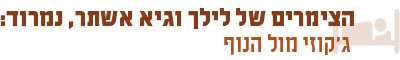 | הדרך ליישוב נמרוד מתפתלת בין מטעי תפוחים וחבושים, שרבים בהם הזולות והדוכנים למכירת פירות. זו היתה היאחזות נח"ל נטושה, ועכשיו מתגוררות בה שש משפחות בלבד. תשעת הצימרים של לילך וגיא אשתר פזורים על צלע ההר, ליד ביתם ובמטע. לכל חדר אירוח (בהם שני צמדים) יש אופי קצת שונה — אלה כפריים יותר ואלה בסגנון מלון, כולם יפהפיים, מטופחים ונעימים מאוד, עם וילונות מבד של שמלת כלה וג'קוזי מול הנוף של ברכת רם. | |