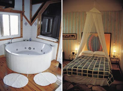 | תשומת הלב לכל פרט ופרט ניכרת מיד: הריהוט כולו נעשה בידי נגר אומן בעבודת יד מעץ מלא, בגוני וניל מעושן. המיטה הזוגית, שמעליה אסופת בדים בצבעי וניל ובורדו המשמשים כאפיריון, שוכנת במפלס העליון, ולידה ג'קוזי זוגי שסביבו פוזרו עלי ורדים ריחניים. משתצאו ממנו יחכו לכם חלוקי רחצה לבנים ומגבות רכות. כדי להביא את הרומנטיקה לשיא, התרווחו לעת ערב במרפסת העץ, אל מול השקיעה היפהפייה שמעל הכנרת. | |