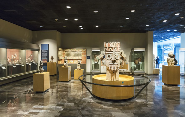 מוזיאון: המוזיאון הלאומי לאנתרופולוגיה במקסיקו סיטי אם צריך לבחור מוזיאון אחד לבקר בו במקסיקו, הרי שזהו המוזיאון הלאומי לאנתרופולוגיה, שנוסד ב-1964 וביסס מאז את מעמדו כאחד המוזיאונים המובילים בעולם בתחומו. המוזיאון אוצר אוסף מרתק של מוצגים מתרבויות העבר של מרכז אמריקה, שביניהן כדאי להתעכב במיוחד על האולמות המוקדשים לתרבויות המאיה והאצטקים. בין המוצגים נמצאת אבן במשקל 25 טון, שנמצאה ב-1790 בחפירות בכיכר המרכזית בעיר, ועליה חרוט לוח השנה האצטקי. לוח זה מנה 18 חודשים בני ארבעה שבועות, שכל אחד מהם נמשך רק חמישה ימים. אתר המוזיאון  אולם תצוגה במוזיאון הלאומי לאנתרופולוגיה