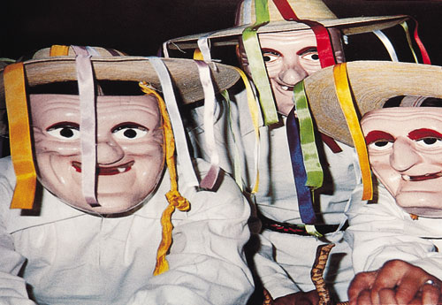 ריקוד הזקנים – ריקוד פולחני הקשור למוות ולזקנה, שנערך רק באיזור אגם פצקוורו, האגם המקודש של שבט הפורפצ'ה, שלידו נבנו הפירמידות. צילום: נחום מגד |