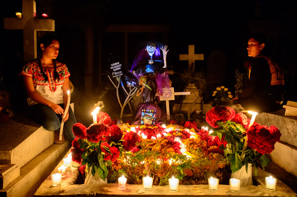 בין המצבות של בית הקברות הסתובבה מרינה אגילר, עטופה ברדיד האינדיאני שלה, להגן עליה מהקור הצורב. מרינה, אנתרופולוגית וארכיאולוגית מקסיקנית ופעילה לשמירת מורשת תרבותית, שליוותה אותנו במסענו, הייתה רחוקה מאוד באותו לילה מביתה שבדרום מקסיקו. "בואנס נוצ'ס, תנחומי. כמה הקבר שלכם יפה!" אמרה, כמיטב המסורת, למקומיים שישבו מול קברי קרוביהם. היא התעכבה ליד קבר קטן שעל מצבתו הניחה אישה מבוגרת מכונית צעצוע, מוקפת בפרחי המתים, ציפורנים בצבעים לוהטים, כתומים ואדומים. האנתרופולוגית, שאיבדה לאחרונה בעצמה את תינוקה, חיבקה את האישה הבלתי מוכרת לה, שסיפרה שהייתה בת 17 כשהילד מת. עד היום, כשהיא כבר סבתא לנכדים, המתרוצצים ליד קברו, היא מתגעגעת אליו, "הוא עוד בא אלי, המלאך שלי".