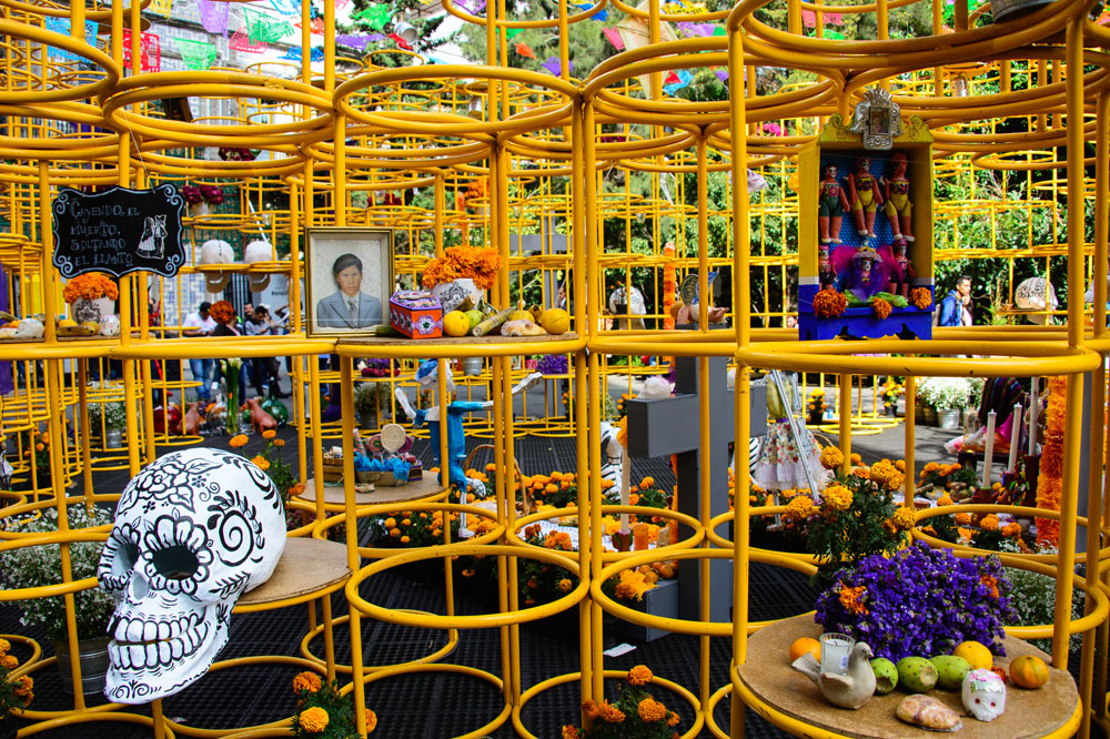יצירת המנחות האמנותיות נעשית במהלך השנה, והן מוצגות לקראת יום המתים ונסגרות מיד לאחר החג, לעיתים הן נשמרות עד חג המולד. אחת מהתצוגות הידועות מוצגת בלב העיר מקסיקו סיטי, ברחבה של מגדל לטינו-אמריקה, בחסות הקרן לשימור מרכז העיר ההיסטורי. הקרן עורכת בכל שנה תחרות יוקרתית שבה נבחר האמן או האמנים שיעצבו את המיצב האמנותי של הבירה לחג המתים. האמנים הנבחרים זוכים לתהילה ארצית.