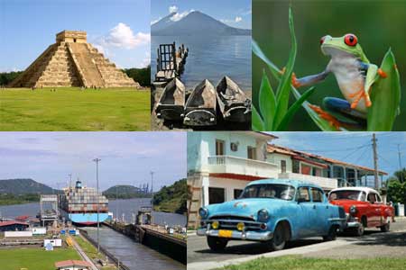 אוצרות טבע: זהב וכסף נמצאו בהונדורס ובניקרגואה. הונדורס בורכה גם במחצבי עופרת, אבץ ונפט. בפנמה מפיקים נחושת, ובקובה ניקל, בנוסף לגידולי הסוכר, הקפה והטבק המפורסמים. אקלים