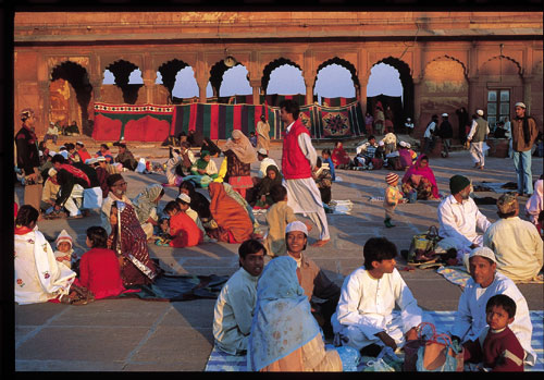 מוסלמים בשעת המנוחה לפני תפילת ערבית בדלהי.