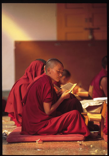 הנזירה ישבה שקועה לחלוטין בשינון מנטרות בודהיסטיות בדרמסלה