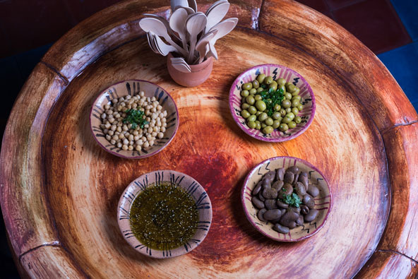 המשתה הפלישתי קם לתחייה מבט ראשון על השולחן הערוך מגלה חומרי גלם המוכרים לנו מהאוכל המקומי שלנו במזרח התיכון. בין המתאבנים: זיתים ירוקים, מטבל זעתר ושמן זית, גרגרי חומוס מתובלים בכמון ושמן זית, פיתות בעבודת יד. במשתה בו נכחתי, ביום חורפי, הוגש מרק אפונה עשיר וטעים עם נטיפי בצקיות.