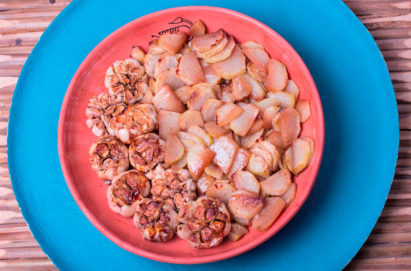 בין המנות העיקריות במשתה הוגשו בצלים אפויים, ממולאים בבורגול ונענע עם יוגורט בסגנון כרתים. זהו מתכון המוזכר בספרו של אתניאוס הסופר הרומאי שחי במצרים. הכרוב הצלוי הפתיע בטעמו. הירקות ממשפחת הכרובים היו נפוצים בעת העתיקה בארץ ומוזכרים גם הם בספרו העתיק של אתנאוס . אחת מגולות הכותרת של הארוחה היה "אנטי פלאשתי"(כמו אנטיפסטי) – מבחר ירקות אפויים בתנור. מה שמזכיר, במבט ראשון, פרוסות תפוחי אדמה אפויים התברר כקולרבי, שהרי תפוחי האדמה, כמו כל משפחת הסולניים (עגבניות, פלפלים ועוד) הגיעו רק לאחר גילוי אמריקה ב-1492. ואי אפשר בלי סלט ירוק עם רימונים וענבים משבעת המינים שהתברכה בהם ארצנו. לקינוח, הוגשו כדורי תמרים המתבססים על מתכון עתיק יומין החקוק על גבי חרס מצרי מלפני 3,600 שנה. עוגיות סולת מוגשות לצד תה צמחים.