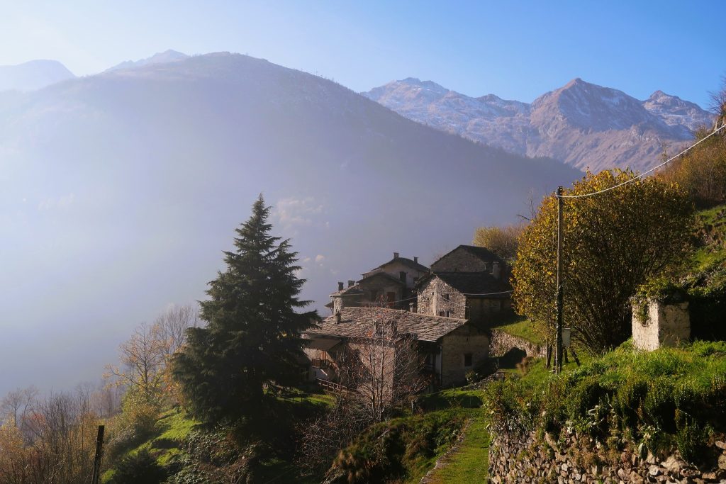 בבוקר התעוררנו לעוד יום שמש חורפי נעים עם תצפית נוף אל ההרים. הפסגות הפרה אלפיניות הבהיקו מלובן השלג שירד בלילות האחרונים וצבע אותן, ולא פסח על פירמידת הר מוז'ינה המוכר מפתיח אולפני ההסרטה פראמאונט. ישבתי עם קודיאק על מפת האזור, סימנתי כפרים מסורתיים בהרים, מפלים ושבילי הרים. לבסוף החלטנו לנסוע לכיוון האלפים לאורך עמק ואלצ'יוסלה (Valchiusella) עד שהכביש יסתיים. נוף ההרים הלך והתעצם ככל שטיפסנו במעלה העמק. אפליקציית Maps.me כיוונה אותנו לשבילים בהר. עצרנו וטיפסנו בשביל עתיק בנוי בתלילות אל הכפר סוצ'ינטו (Succinto) שנראה כמו תלוי על מדרון אלפיני. עשירי טורינו ומילאנו רוכשים את הבתים העתיקים ומשפצים אותם לחופשות הקיץ שלהם. משם ירדנו אל גשר הנהר צ'יוסלה הזורם עד שוצף במפלים ואשדות. סיימנו את הטיול הרגלי בכפר פונדו (Fondo) שפירושו עמוק או נידח. מעבר לו מתרוממים מתלולים אדירים והדרך נעלמה.