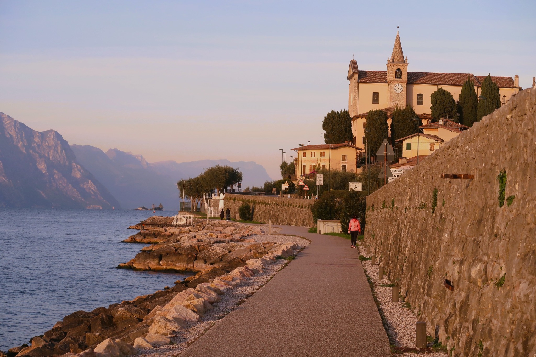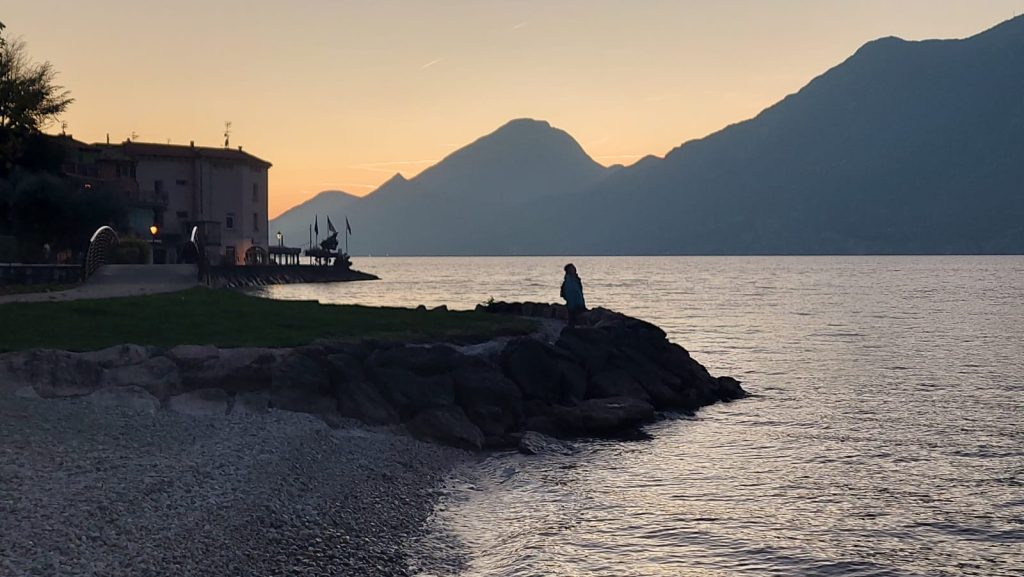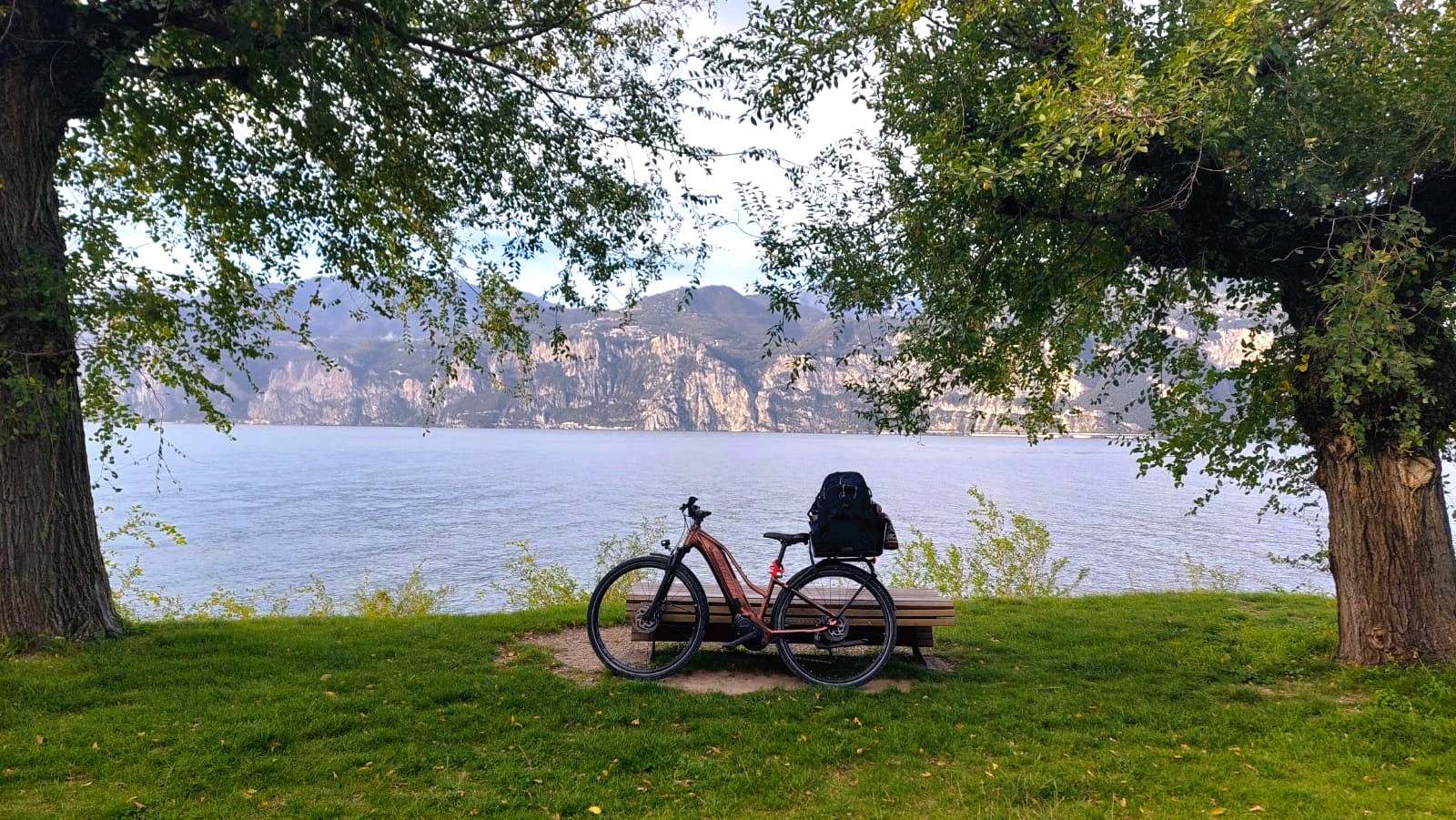 אחרי חניית לילה המשכנו אל אגם גרדה, אגם גדול ויפה מראה, כלוא בין ההרים והמישור. בקיץ הוא מלא עד אפס מקום, אינספור בתי מלון, מחנות קמפינג, מסעדות ואטרקציות. כעת קר מדי להשתכשך באגם והתיירים נדדו למקום אחר. מצאנו קמפינג אחד פתוח לקרוואנים, מסעדה אחת פעילה, וחנות קטנה להשכרת אופניים חשמליים. זה הספיק לנו כדי לבלות יום שלם בדרכי האופניים לצד האגם, לנסוע דרך הסמטאות הצרות בכפרים ואפילו לדווש בכבישים הריקים המטפסים במעלה ההר אל תצפיות נוף על האגם.