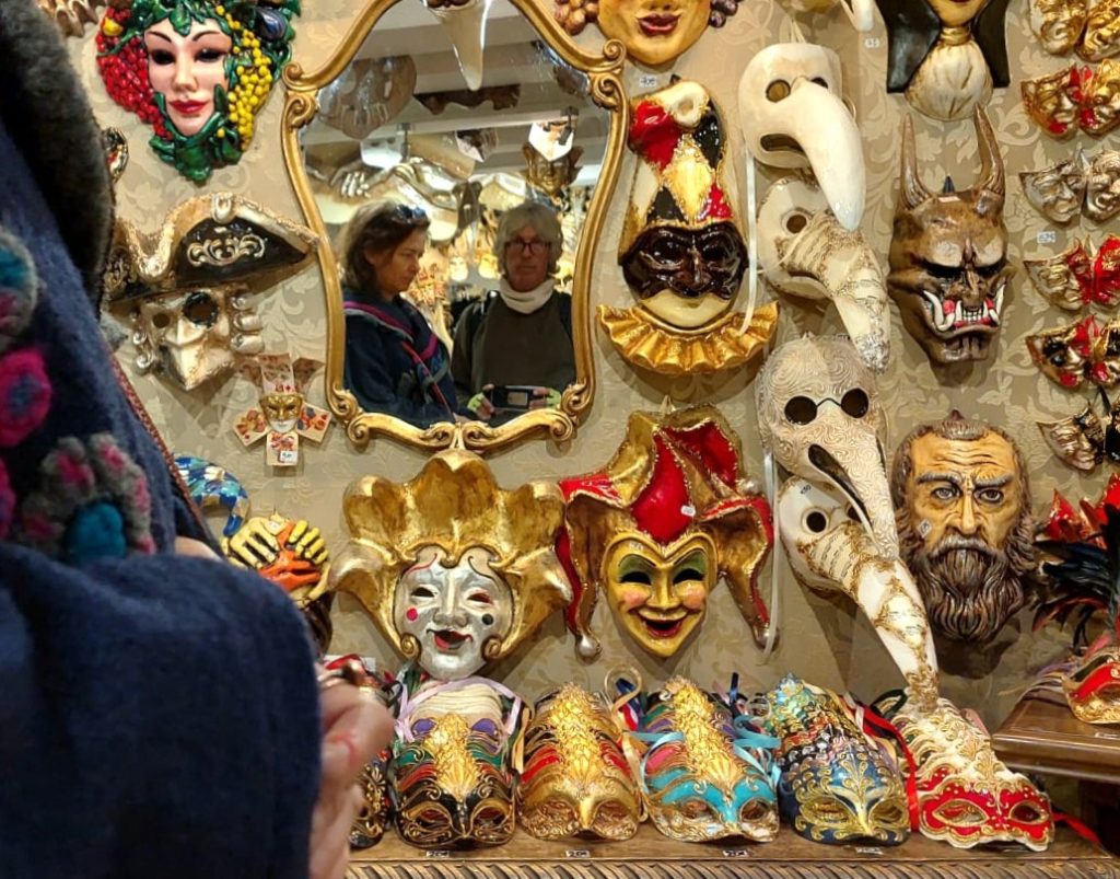 בוונציה מצאנו שפע של מקום בחניון הקרוואנים ליד האוטובוס הימי המחבר בין היבשת לעיר העתיקה הבנוייה על קבוצת איים. תנועת התיירים כנראה לא נפסקת שם אף פעם למרות הקור ורוחות החורף שמנשבות בעוז מן האלפים. העלייה במדרגות אל גשר ריאלטו המחבר בין שני חלקי העיר עדיין צפופה, אבל פחות. המסכות הוונציאניות המעוצבות לעילא מוצגות בחלונות הראווה. עוד מעט, בשיא הקור, הן ייחטפו כמו לחמניות טריות לקראת הקרנבל השנתי המבדיל בין חושך לאור, בין כאוס לסדר הטוב.