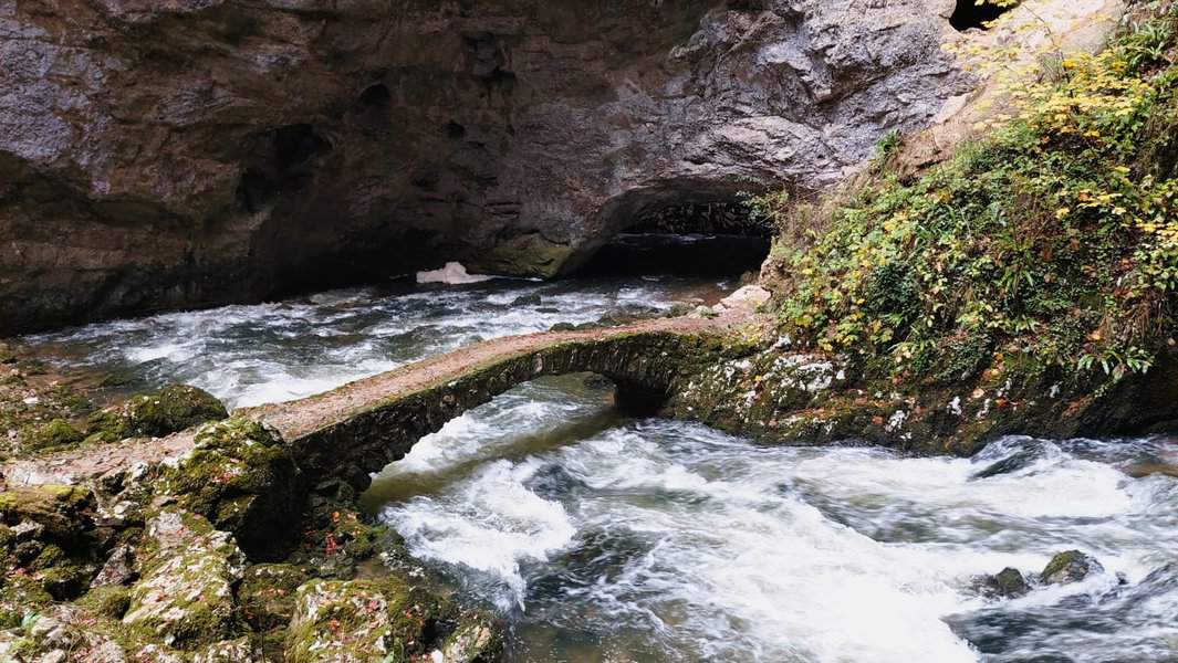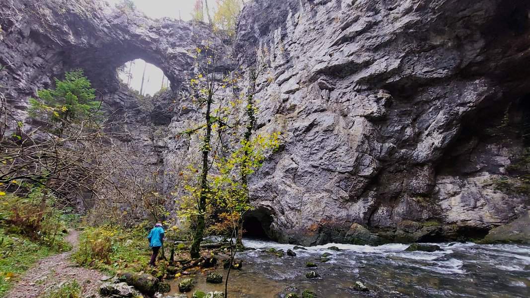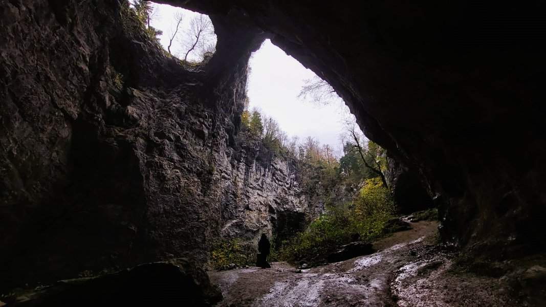 הגענו אל פתחה של המערה הגדולה ממנה מגיח הנהר המשותף. עונת הסתיו כעת בחבל קארסט, הגשמים אך החלו והנהר כבר זורם בעוצמה אדירה
