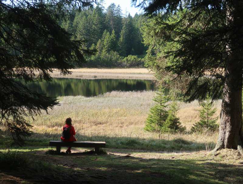 עלינו בכביש צר אך סלול היטב בין בתי איכרים אל רכס פוחוריה, ואל תחנת הסקי הקטנה Trije Kralji 'שלושת המלכים'. יצאנו למסלול הליכה בעקבות סיפורה העצוב של אורשקינה. בעלה המסור היה עובד קשה לפרנסתם, חוטב עצים ביער, גורר את הגזעים אל האגם השחור, ומשלח אותך לעמק דרך פלגי המים. יומיום היתה אורשקינה מכינה ארוחה חמה, מטפסת בהר אל היער ומביאה לבעלה. יום אחד התחוללה סופת שלגים, אולם אורשקינה שדאגה לבעלה, לא ויתרה ויצאה לדרך. השלג היה כבד וכיסה את שבילי היער, אורשקינה איבדה את דרכה ואת כוחותיה וקפאה למוות. "סיפור אמיתי" הבטיחה לנו פקידת הקבלה במלון אליה ניגשנו לברר אם יש מפה של המקום. "יש לנו מבצע מיוחד בשבילכם" בישרה הפקידה והגישה לנו מפה עם סימון השביל "תעברו בין חמש נקודות המסומנות במפה, תתעדו אותן בצילום משותף ותזכו בפרס". יצאנו לדרך, טיפסנו מכנסיית העץ של היישוב הקטן, בין יערות האשוחים והדולבים, עברנו במעיין במעלה ההר, צפינו בשלל פטריות ובהן פטריות הרעל המנוקדות באדום ולבן, והגענו עד לאגם השחור. אחרי שעתיים וקצת כולל סדרת צילומים השלמנו את המשימה, ואפילו תפסנו טרמפ בדרך עפר עקיפה חזרה למלון עם זוג מטיילים שאספו פטריות מאכל למכביר. הפרס המכובד היה שתי מנות עוגת קרמשניט סלובנית לאומית עם מיטב הקצפות והג'לי. מנה אחת הענקנו לזוג שלקח אותנו טרמפ ונראה היה שהם נהנו מאוד. אנחנו החלטנו שאנחנו אוהבים את סלובניה אבל את העוגה הלאומית פחות.